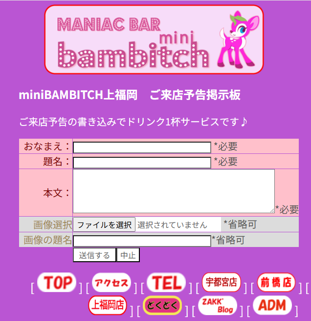 ご来店前にBBSにご来店予告を書き込みされると